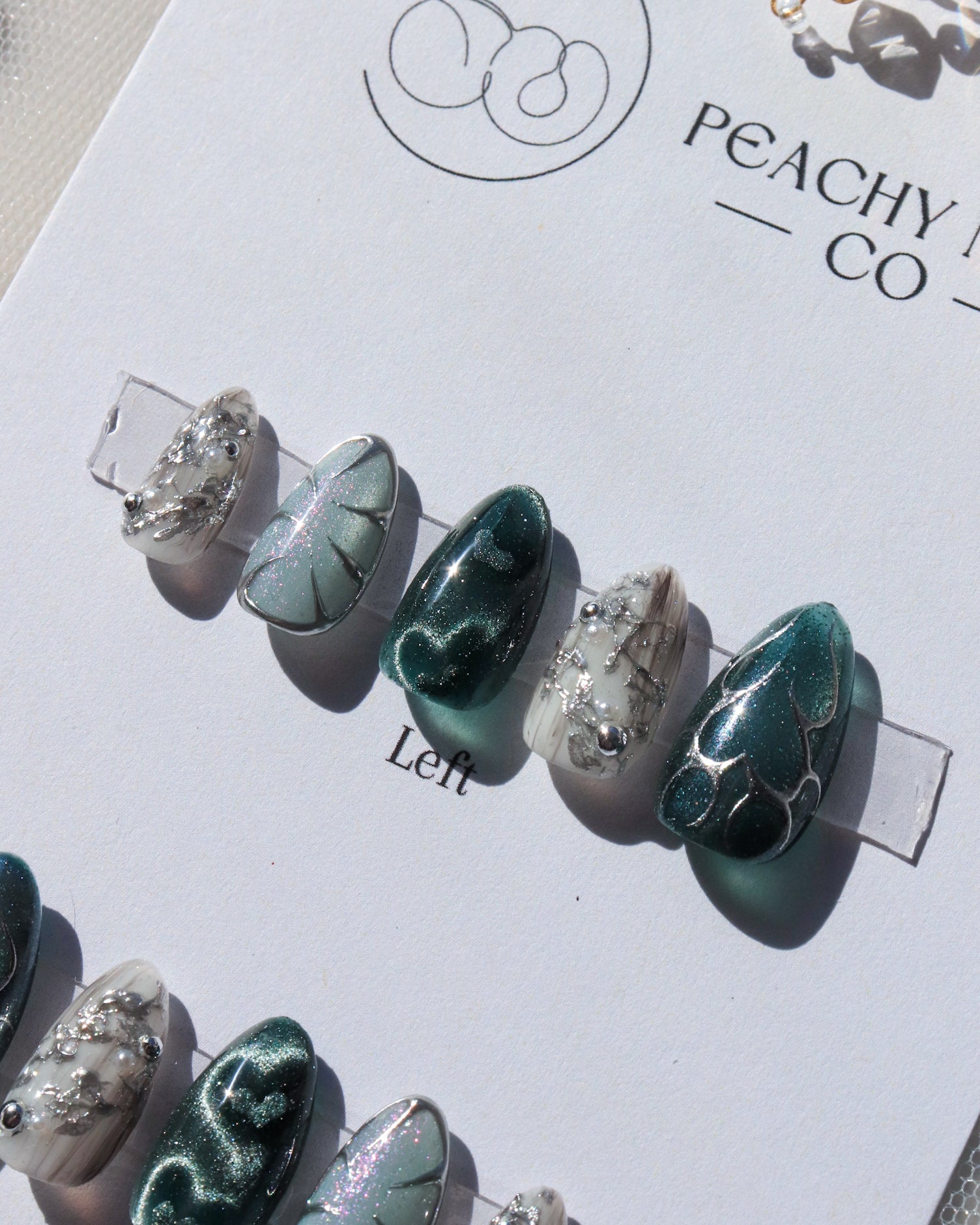 If using "custom" sizing, please let us know the measurements in the instruction box at the checkout, or if you have purchased our sizing kit, please write what number each finger corresponds to with the correct number on the press-on.