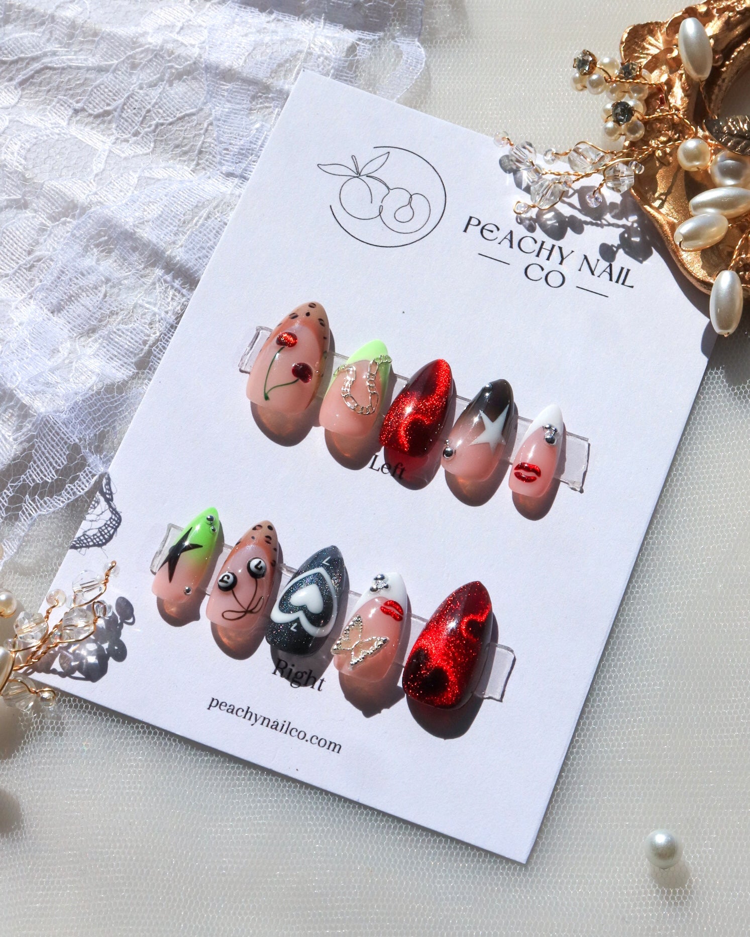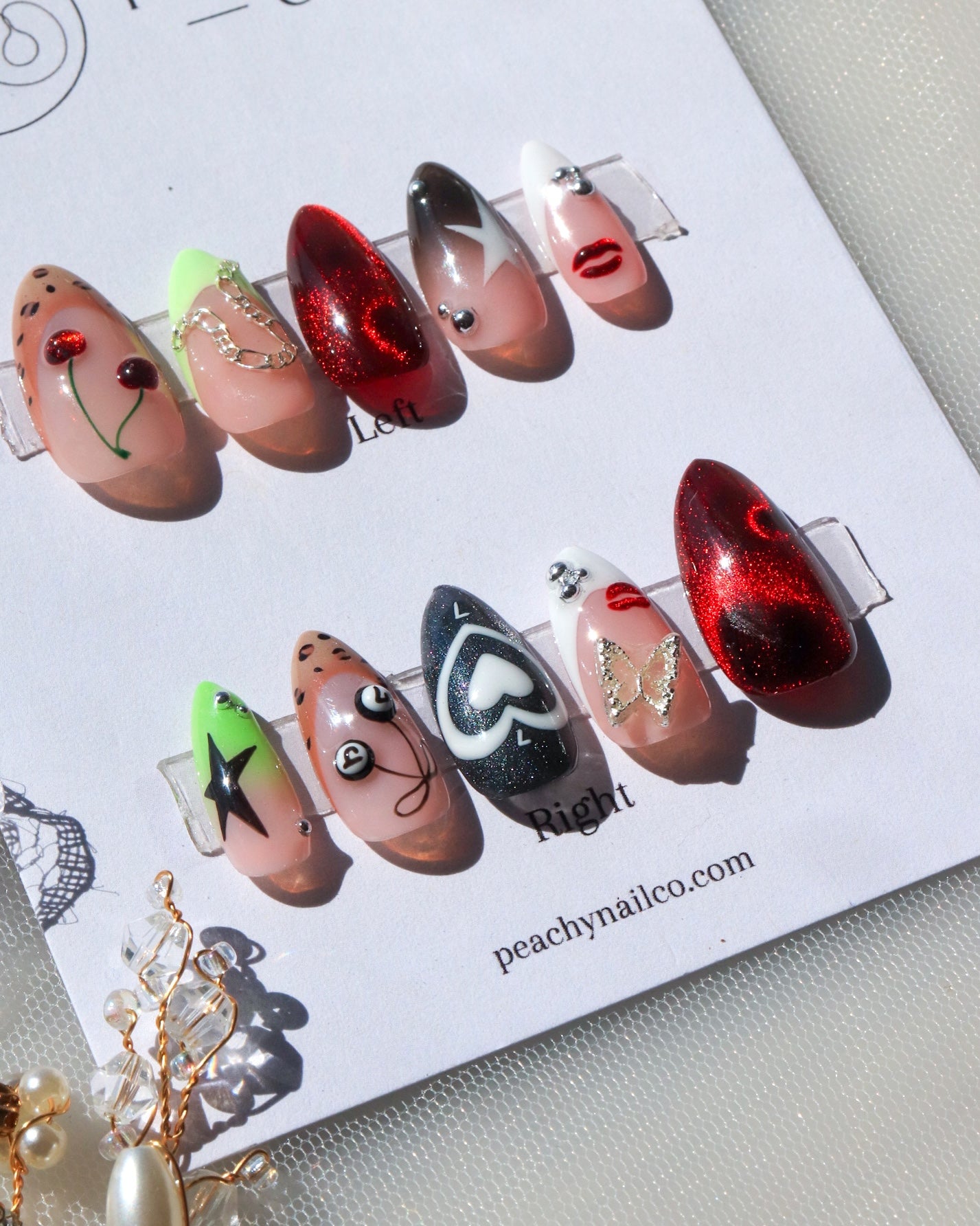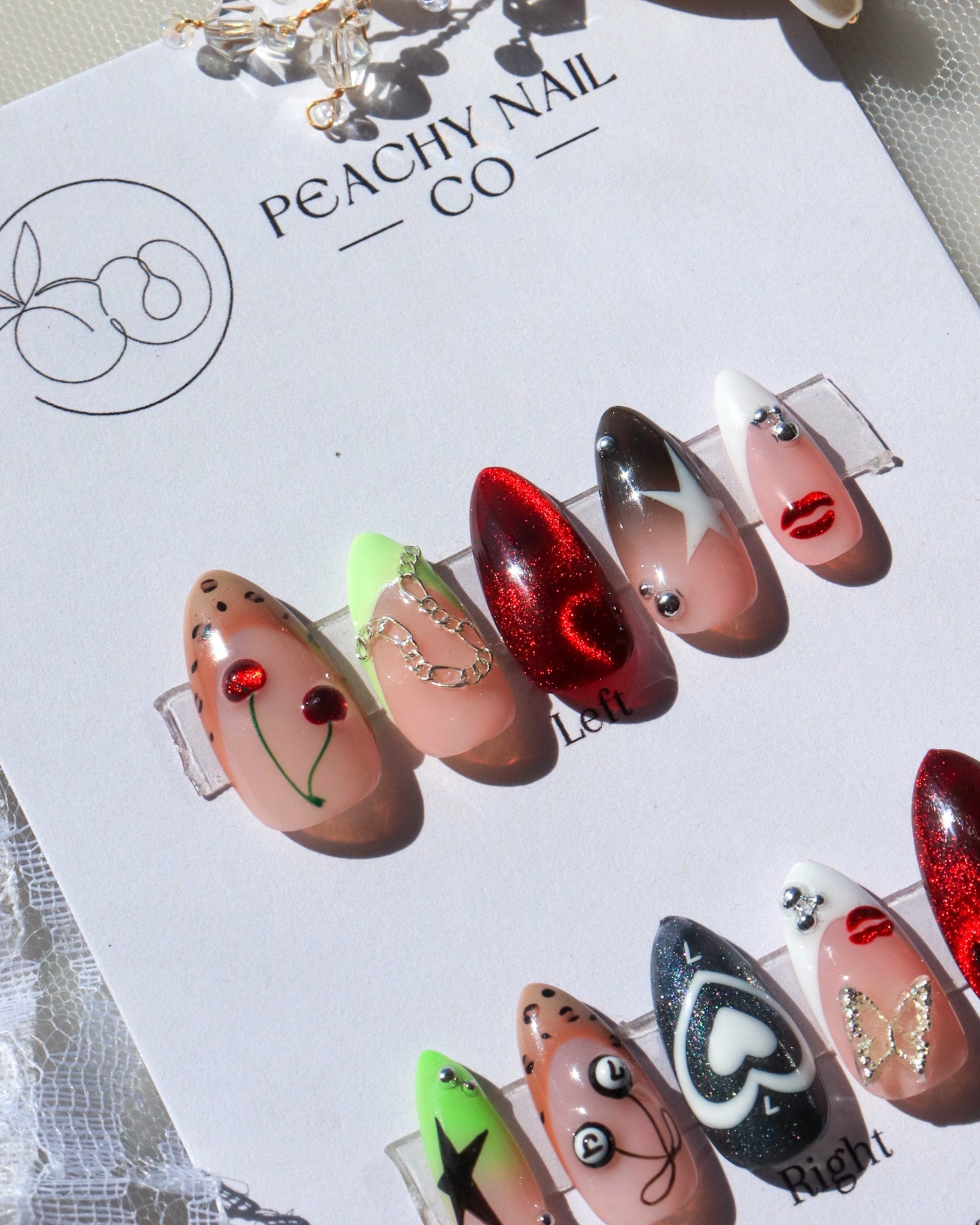 If using "custom" sizing, please let us know the measurements in the instruction box at the checkout, or if you have purchased our sizing kit, please write what number each finger corresponds to with the correct number on the press-on.