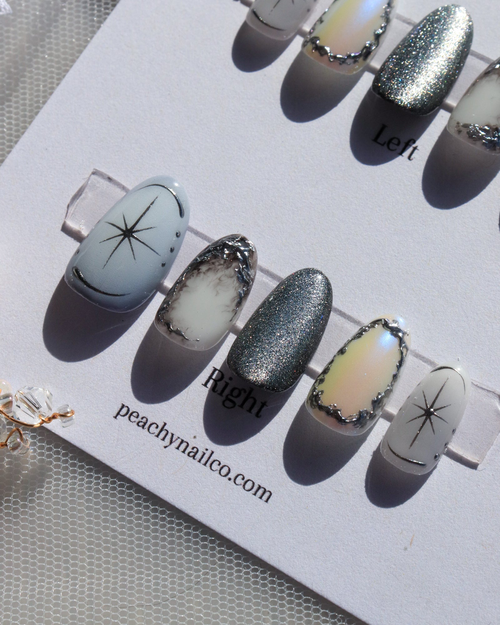 Each nail set comes with 10 nails in the chosen shape and sizes, and a free nail pack that includes: