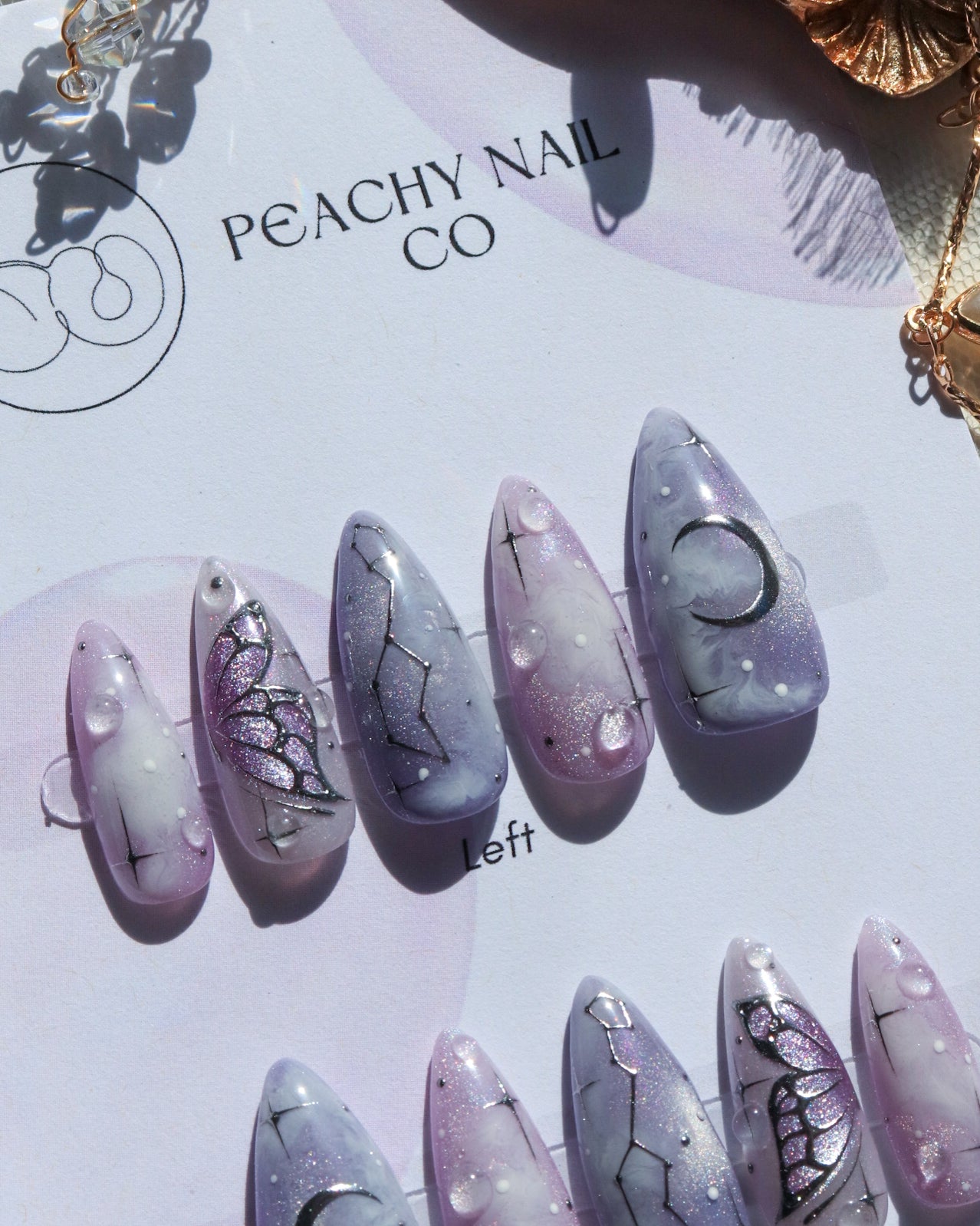 Each nail set comes with 10 nails in the chosen shape and sizes, and a free nail pack that includes:
